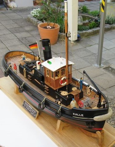 Der Dampfschlepper Kalle ist nach altem Vorbild eines Schleppers mit Dampfantrieb mit den wesentlichen Merkmalen unter Verwendung hochwertiger Beschlagteile nachgebaut. Ich habe versucht das Modell dem Original soweit wie möglich nachzubauen, hierzu waren einige Änderungen nötig auch die Lackierung. Ferner habe ich noch ein Dampf-Soundmodul von GB-Modellbau eingebaut mit Dampf-Erzeuger u.s.w..