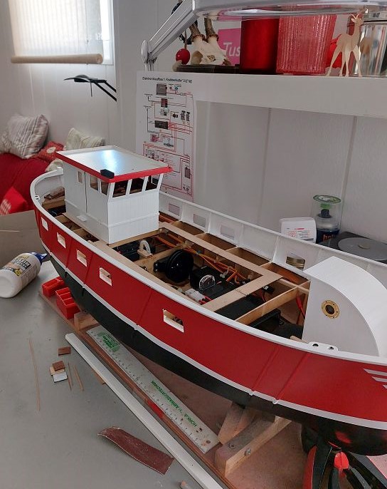 Mitlerweile ist der Kutter fertiggestellt. Der Kutter ist vollfunktionsfähig, Beleuchtung, Bugstrahlruder, Rütteltisch und Sortiermaschine Suchscheinwerfer funktionsfähig, Netzbaum absenkbar, Kutter-Sound und vieles mehr.
